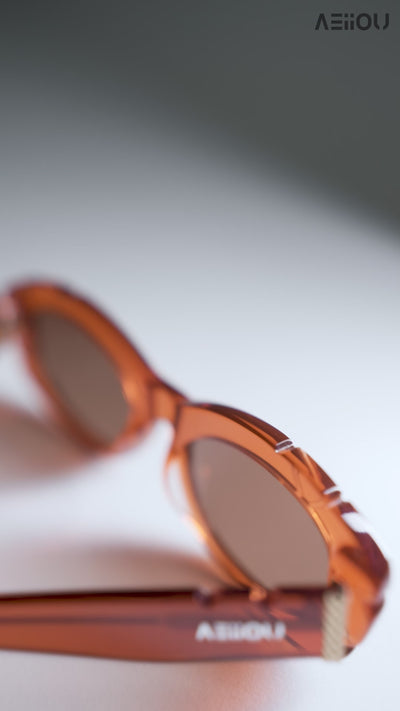 "Make a bold and artistic statement with our Prism Cut-Red Luxury Sunglasses. These meticulously crafted shades feature a unique sculpted orange acetate frame with a textured, three-dimensional design, exuding contemporary artistry and sophistication. The brown lenses provide both UV protection and a warm, elegant look, making them the perfect accessory for the discerning woman who appreciates avant-garde design.